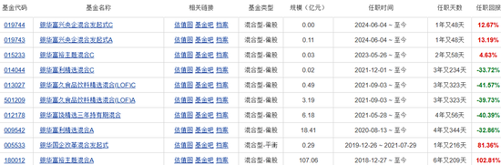 而除了权益部门发展不利外,公司的债券规模也出现了规模下降的情况。银华顺和的规模从2024年91亿元跌至2025Q2的50亿元;同样经历下跌的还有银华安丰中短期政金债A(2024Q4的86.11亿元跌至58.86亿元)、银华安颐中短债双月持有A(2024Q4的25.86亿元跌至17.97亿元)、银华安鑫短债A(2024Q4的34亿元跌至23.6亿元)等。