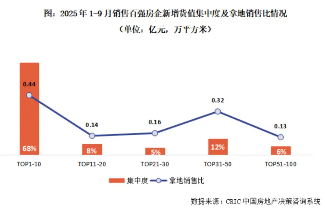 从拿地企业来看,截至9月末仍有近五成销售百强房企尚未拿地,仅16家房企拿地金额超过百亿。