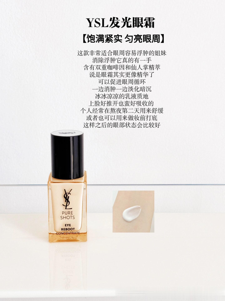 主要作用是紧致眼周、保湿消肿,双效咖啡因,告别熬夜泡泡眼,摩洛哥仙人掌花,改善眼周暗淡,由内焕亮,YSL的护肤线都还蛮冷门的,泵头设计取量很好控制。